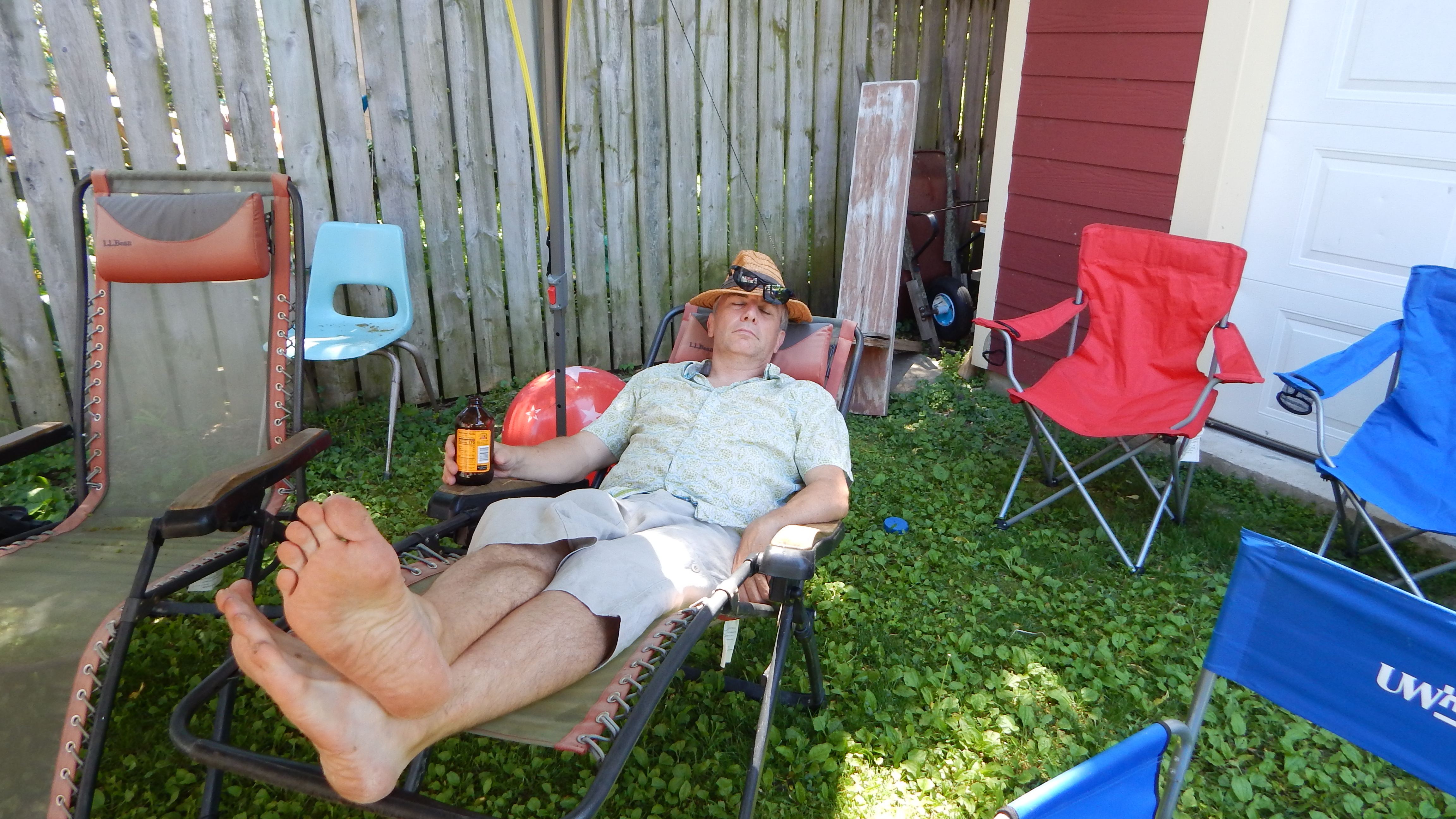 Anne and Pat held an outdoor party for Luna at their Madison home and many family members attended. Paul was relaxing in his chair before guests arrived. We parked our van in their driveway for the whole weekend. Madison is another town that we love. Two of my sisters, Anne and Carrie, live there and we visit quite often. The Marquette Waterfront festival was in full swing. Anne and I decided to participate in the boat parade “fool’s flotilla” on Sunday morning.